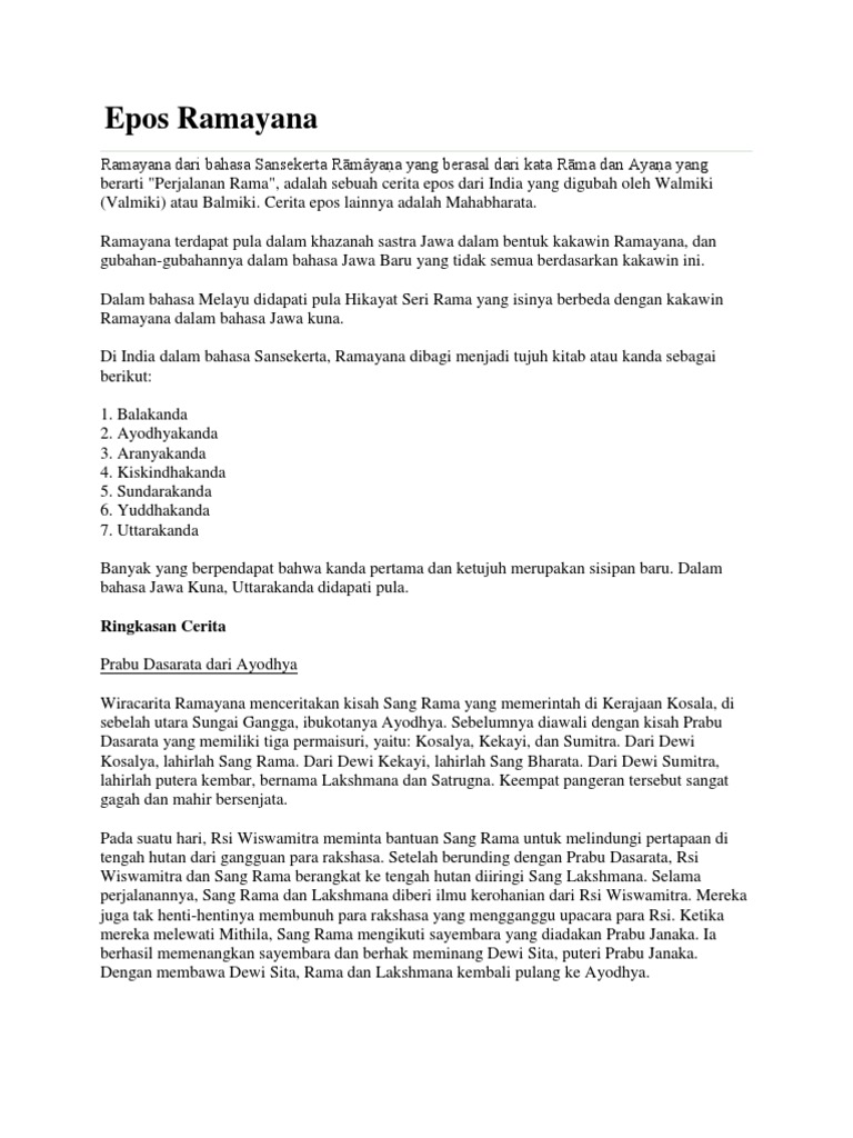 Sinopsis Cerita Ramayana from demo.dokumen.tips Cerita ramayanan sesuai dengan cerita kehidupan manusia dalam mencari kebenaran dan hidup yang sempurna. Sifat / watak tokoh wayang ramayana. Wayang/ puppet plays in java are basically stories of the epics of the ramayana and mahabharata. Cerita wayang ramayana dalam bahasa jawa krama, ngoko singkat, unsur instrinsik cerita ramayana, anoman obong, smp, kumpulan, menggunakan, ringkasan singkat. Ramayana was the work of walmiki (valmiki) while mahabharata was authored by wiyasa (vyasa). September 27, 2008 pada 4:17 pm (galleri) tags: Karena ceritanya yang juga membuat penggemar cerita. Seni pertunjukan yang telah berusia lebih dari lima abad.