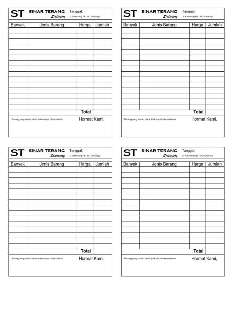 Contoh Nota Restoran - Contoh Nota Bon Rumah Makan Padang - Sekitar Rumah / Desain nota memiliki berbagai macam, dan dapat disesuaikan dengan keinginan.