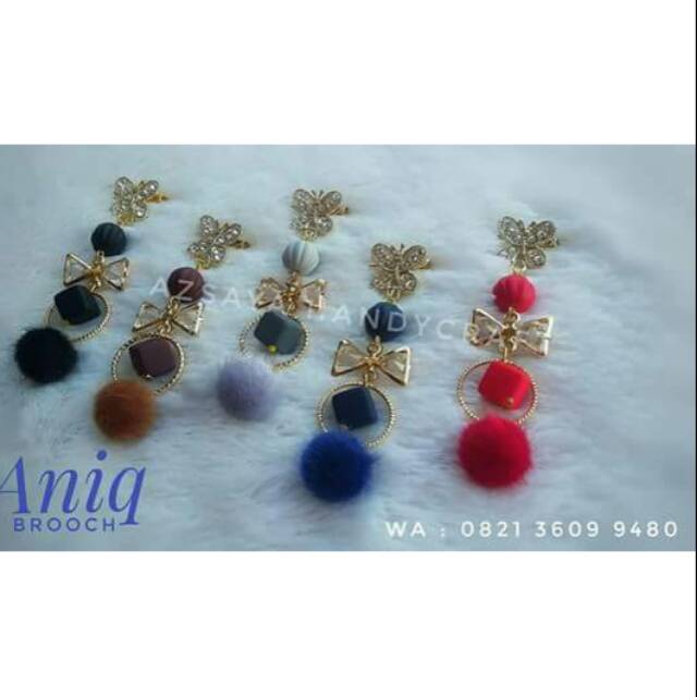 Bross dagu pompom swaroski bros dagu sedang cantik winsstyle aksesoris hijab peniti jilbab .